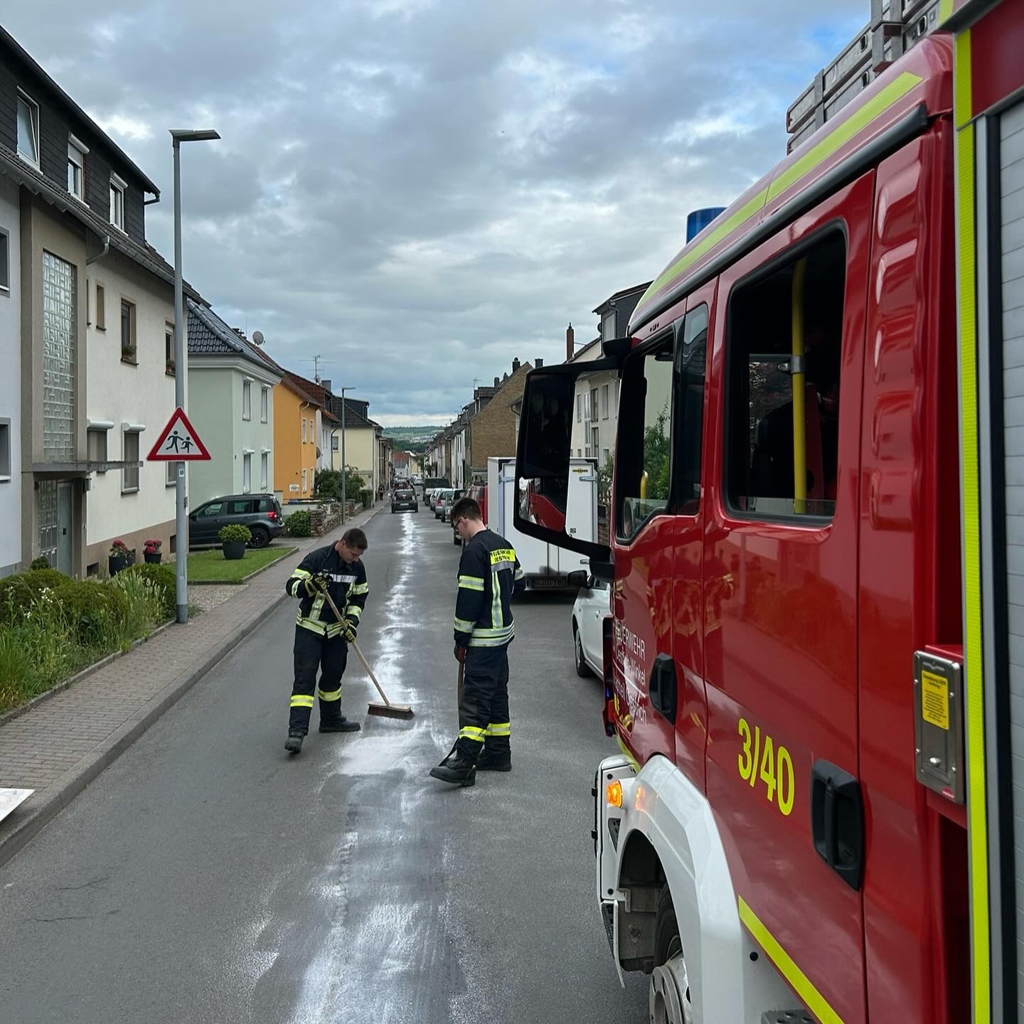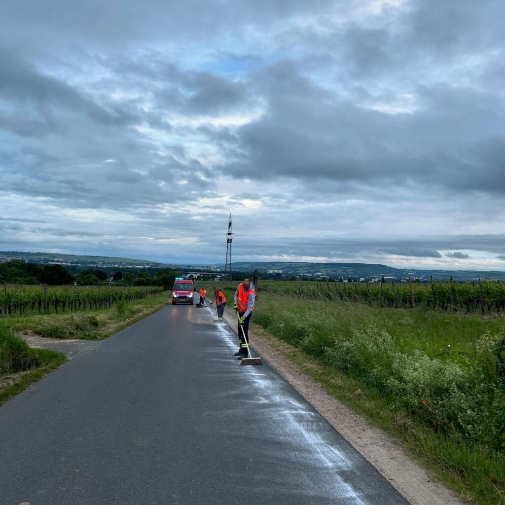 Heute Abend wurden wir zu einer Ölspur im Ortsbereich gerufen. Bei der Ankunft stellte sich heraus, dass sich die Ölspur über 2km Länge bis hin in die Weinbergsgemarkung erstreckte. Daraufhin wurde die Feuerwehr Hallgarten zur Unterstützung nachgefordert. Das Hydrauliköl wurde mittels Bindemittel abgestreut und aufgenommen.