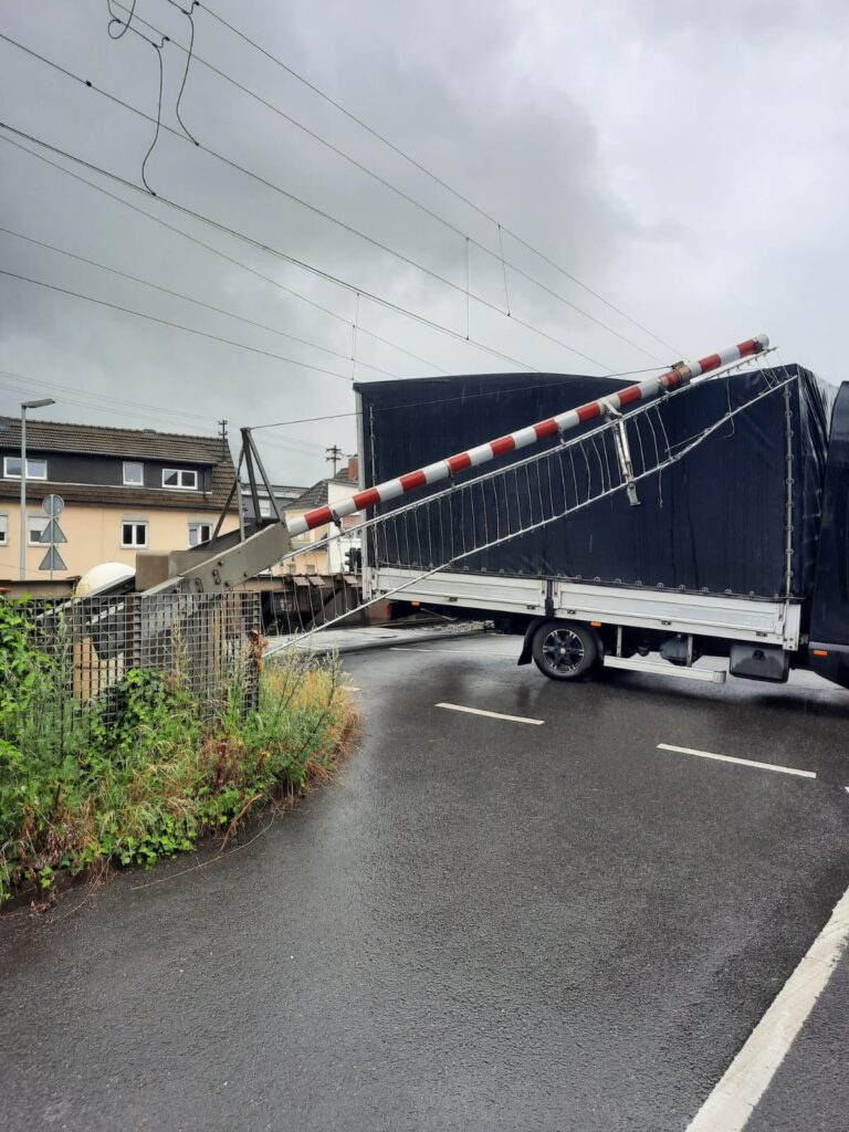 Wir wurden heute Mittag zum Bahnübergang in der Römerstraße gerufen. Hier steckte ein LKW unter den Bahnschranken fest. Hinter dem Transporter kam bereits ein Zug zum stehen. Durch uns wurde mittels Werkzeug und Sicherungsmaterial der Transporter befreit und die Schranken so gesichert, dass sie nicht in den Straßenverkehr hineinragt. Die Einsatzstelle wurde an die Deutsche Bahn und die Polizei übergeben.