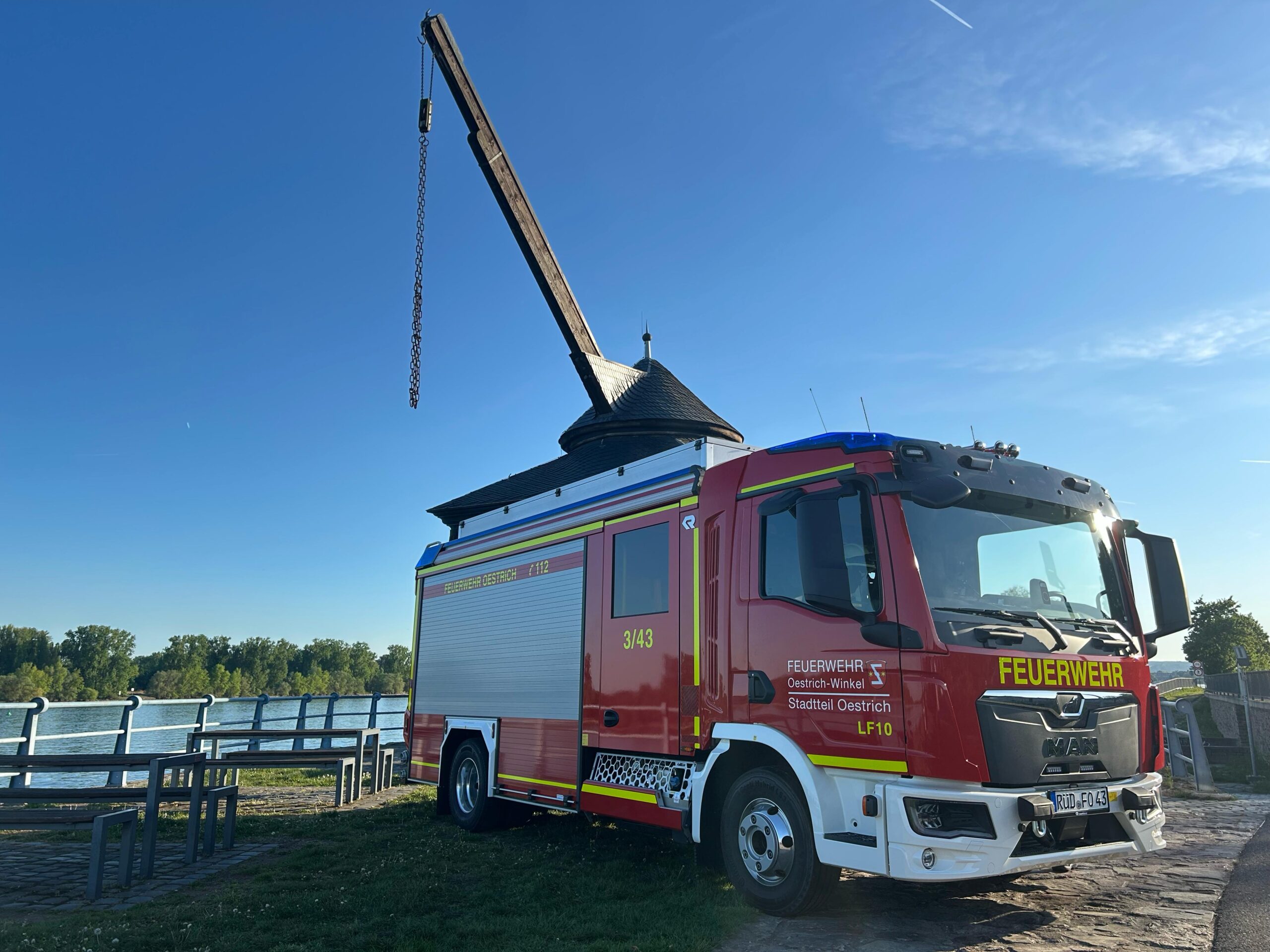 Während ein Teil unserer Einsatzabteilung auf dem Aktivenausflug war, wurden wir zu einem verletzten Schwan an den Rhein gerufen.Bei Annäherung flog das